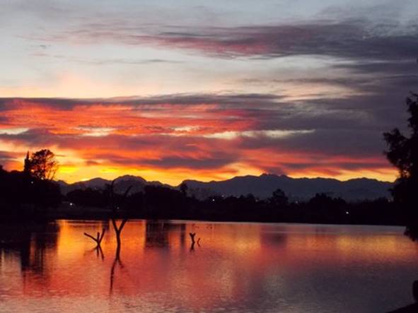 (Sonsopkoms oor Sonstraal dam, Durbanville, Kaapstad – Foto deur Jakes Joubert)